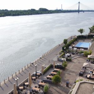 Unsere Zimmer mit Blick auf die Donau, hatte ein King-Size-Bett, eine Sofa-Ecke und einen Schreibtisch. Ein riesiges luxuriöses Zimmer für nur zwei Nächte. Wir waren doch schon recht müde, also ging es noch schnell unter die Dusche und ab in das super bequeme und riesige Bett.